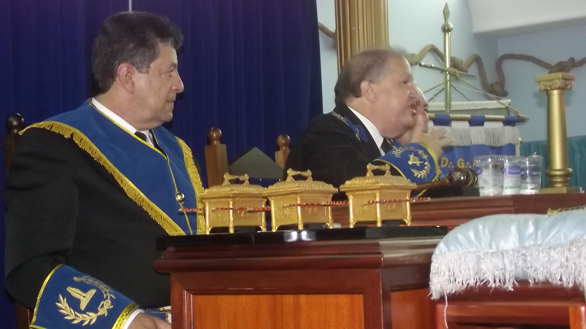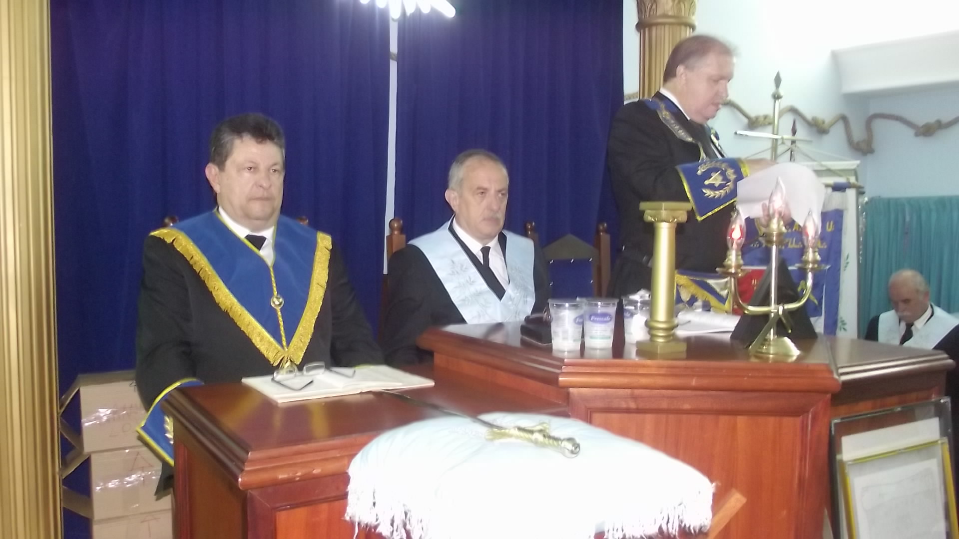 A Sessão contou também com a presença do Eminente Deputado do Grão Mestre Irmão José Fernando de Paula, do Ministro Presidente do Tribunal Maçônico Irmão Nilson de Oliveira Toledo que compuseram o Trono de Salomão juntamente com o Grão Mestre.