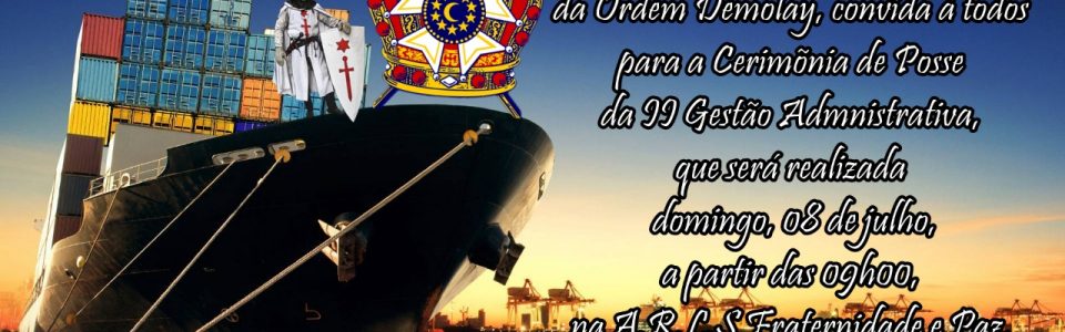 O Capítulo Porto dos Templários Nº 977 da Ordem DeMolay e a Loja Fraternidade e Paz Nº 89 do Oriente de Paranaguá, CONVIDAM a todos os Irmãos, Sobrinhos e interessados a participar da Cerimônia de Posse da Gestão Administrativa do referido Capítulo.